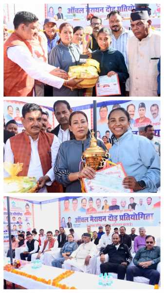 कैबिनेट मंत्री रेखा आर्या ने कहा कि खेल के क्षेत्र में प्रदेश को देश का अग्रणी राज्य बनाने के लिए युवाओं को कड़ी मेहनत करनी होगी। उन्होंने कहा कि इस बड़े लक्ष्य की पूर्ति के लिए सरकार हर तरह से खिलाड़ियों को समर्थन दे रही है ।उन्होंने कहा कि प्रदेश के लिए पदक जीतने वाले खिलाड़ियों को आउट ऑफ टर्न नौकरी दी जा रही है, साथ ही अन्य सरकारी नौकरियों में भी उन्हें 4% आरक्षण देने की व्यवस्था की गई है।मैराथन दौड़ में बालक और बालिका वर्ग में पूजा बिष्ट और नीरज नेगी प्रथम स्थान पर रहे, जबकि मेघा गोस्वामी और तुषार ने दूसरा स्थान हासिल किया । अनु भट्ट और सौरभ रावत तीसरे स्थान पर रहे । इन सभी को मुख्य अतिथि कैबिनेट मंत्री रेखा आर्या ने सम्मानित किया।
